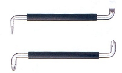 在狭小的空间和无法使用改锥处,用来紧固和松开开槽螺钉,调节开槽顶丝。 两端改锥头大小相同,相差90°角,便于在作业时找角度,交替使用。 铬钒钢材质,表面镀铬处