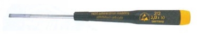 用于紧固和松开M3以下精密开槽螺钉。 同时确保工具上可能携带的静电荷均可以接地释放,确保工具无静电, 避免集成电路板的精密电子元件由于静电造成误动作或损坏。 手柄材料掺碳导电,可确保接地释放静电荷。 同时手柄表面具有106-109欧姆电阻,确保静电接地缓慢释放, 快释易损坏精密电阻元件。