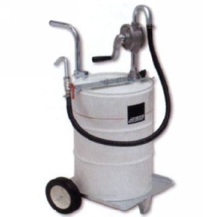 两室叶片泵带有3节金属吸管组套, 适应最大到200升的通输油管长1.2米,桶口适配螺纹R2″, 移动车可装容积50-60升的桶,可提取柴油、机油、石油制品和液压油, 输油量:250cc/转