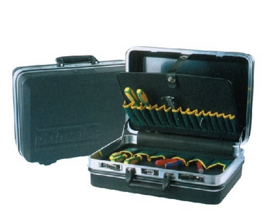 顶盖有文件隔。 可拆卸双边工具板,前17个插袋,后12个插袋。 ABS托底。 顶板,带3个大插袋和2个弹簧口。 工具板采用防刮型塑料。 符合人体工程学的手柄设计。 两边安全锁。 中间密码锁。 稳定的顶板支架。 顶板铰链接合设计。 可脱卸的肩带(可调节)。 不含工