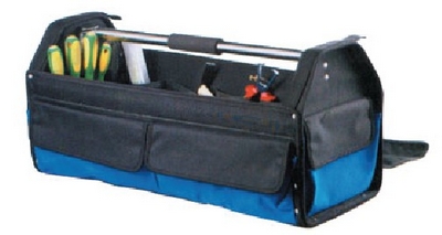 帆布,极其耐用。 类型: 顶部金属支架,带海绵橡皮手柄。 下部分包体关闭后,可完全关闭整个包。 可调节带肩垫背带。 坚固的塑料滑轨。 外部:2个大口袋,关闭成4个口袋,2个大魔术贴可固定水平仪等物品。 内部:18个小插袋,13个中插袋,5个大插袋。 不含工具。