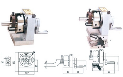 夹持直径:4-30mm 穿过中心孔:23mm V型块调整器:rack&pinion 中心高度:80mm 分割等份:24 净重:7kg