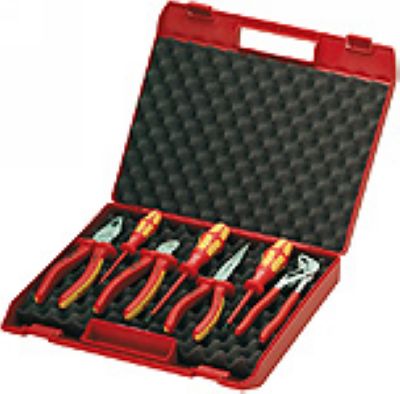 除了水泵钳外,所有钳子都符合N/IEC 60900和VDE绝缘试验;采用优质的耐冲击吹塑盒(货号00 21 15 LE)型号 00 21 15 LE :工具箱尺寸(HxWxD)65x327x275 mm