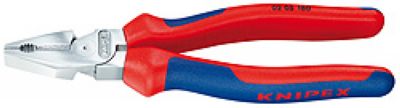 强力型由于采用新式改进型杠力矩设计,省力35%;较长剪切口适合剪切较粗电缆线;钳口适合夹持扁平和圆形材料,用于多种用途;剪切口适合剪切软线,硬线及钢琴丝;剪切刀口附加感应淬火,硬度为洛氏硬度64HRC;长度200,头部镀铬,双重双色手柄;剪切能力直径2. 面积25mm