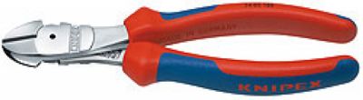 采用锻制的轴,用于重型剪切;适用剪切各种类型的线,包括钢琴丝; 长的斜口钳适用于剪切16mm2以下的铜线和35mm2以下的铝线;省力21%,长度200,头部镀铬,双色双重材料手柄