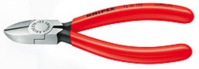 采用精密剪切刀口,适合剪切软线硬线,还适于剪切较细钢琴丝;重叠绞接;刀口硬度约为洛氏硬度63HRC;长度125,头部抛光,塑料套柄