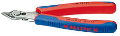 精磨的剪切刀口,无偏刃,适于齐平剪切工作;精密成形的尖端亦可齐根剪切直径0.2mm的材料;采用不锈钢铆钉接合低磨擦剪切使操作疲劳减到最少;采用复位弹簧实现有限制的复位;手柄配有双色双重材料手柄,红色和蓝色;采用INOX-不锈钢材料制成,剪切刀口硬度为洛氏硬度54HRC;长度125,头部不锈钢,双色双重材料手柄