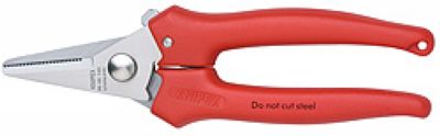 多功能剪可用来剪切纸板,塑料,铝箔和铜箔;不可用于剪切钢丝或薄铁板;采用可调式螺钉接合;应用复位弹簧和锁紧装置;长度140,钳头抛光,塑料套柄