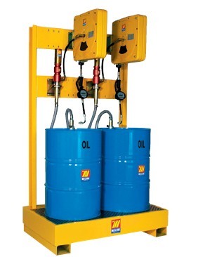 配有: 2个气动油泵(R=3:1bar) 带壁挂功能接油槽 2个10m,R1 1/2” 提油软管卷盘(带护壳) 2个墙装托架 2个920mm ?42mm提油管 2个2m ?1”软吸管 2个0.
