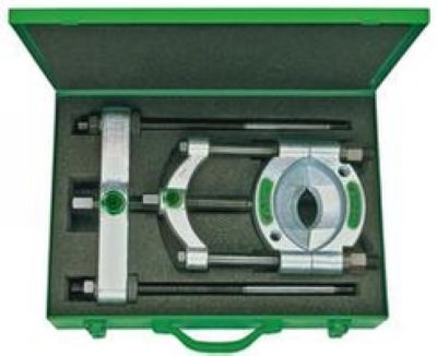 Die S?tze enthalten je eine Trenn- und Abziehvorrichtung. Besonders handlich, da die Trennbacken mit einer Schnellspann-Druckspindel schnell und zentrisch gespannt werden. Die scharfen Schneiden erm?glichen das Abziehen bündig aufliegender Teile, wo Haken