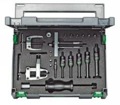 21-teiliger Satz, zum Abziehen von Lagern mit einem Durchmesser von ? 8-48 mm. Der Satz enth?lt Innenauszieher mit passendem Gleithammer, 2-armige Abzieher und Kugellager-Auszieher. Auch ganz dicht auf der Rückwand sitzende Lager k?nnen durch die vorzügli
