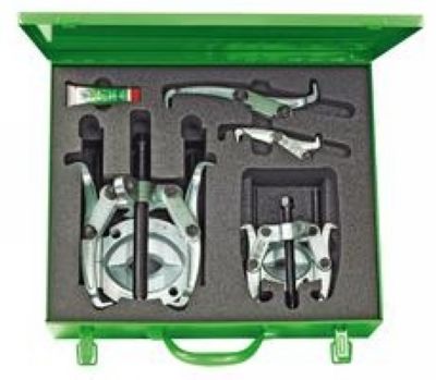 Dieser Satz enth?lt Teile für 4 verschiedene mechanische Abzieher, 2 x 2-armige und 2 x 3-armige Abzieher. Der Kombi-Abzieher kann sowohl als 2-armiger als auch als 3-armiger Abzieher verwendet werden und vereinigt somit die Vorzüge beider Modelle. Die Ab