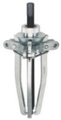 Abzieher mit automatischer Selbstspannung und konusgeführter Spannweiteneinstellung. Durch die umlaufende Radialfeder am oberen Rand der Abzughaken entsteht eine Federspannung, wodurch sich die Haken beim Ansetzen an das abzuziehende Teil selbstts?ndig an