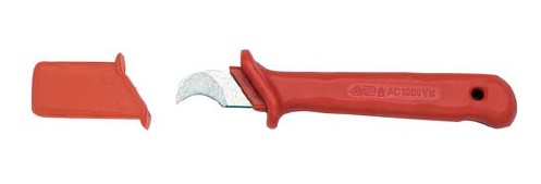 不锈钢刀刃,塑料手柄,有刀鞘 印着1000 V + VDE