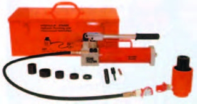 用于在钢铁或不锈钢板上开圆孔、方孔或长方孔。组套未配压模, 根据需要选择圆孔、方孔或长方孔压模开孔。 组套包括手动液压泵(配快速接头)1台,液压管1米,液压螺栓2根; 直径19mm和直径19.0x9.5mm,间距衬套1套5个,钻头1根,直径11.0mm。 液压泵高低压制式,安全泄压阀。铁盒包装。