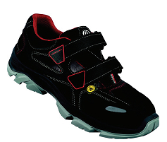 鞋面高质量织物,内衬透气牛皮和功能材料,带防砸钢板,粘带,防静电