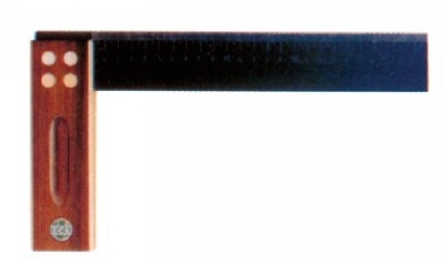 上漆的红木杆,刃边两面上嵌入黄铜, 在辅助凹槽便于手握, 蓝色硬质弹簧钢刃边,4点铆接。