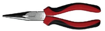 用于分选多股电线,狭缝深孔中夹取,装配和拆卸各种小零件、 金属片和金属丝。 可以切断金属丝,特种工具钢材质。 头部抛光处理,双色手柄。 60 150 422 45°角弯嘴钳。